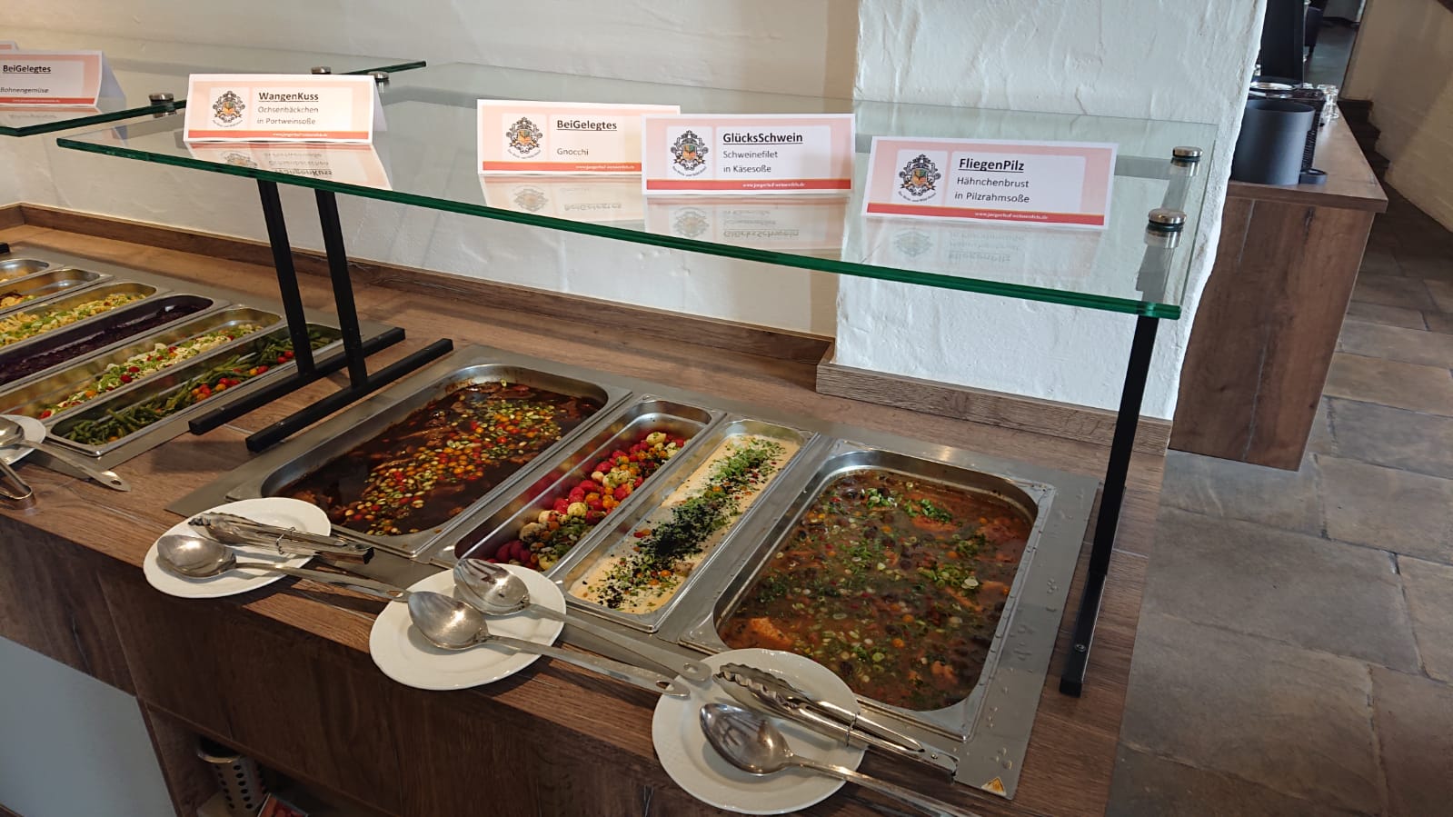 Wir zaubern für Sie ein großartiges Buffet mit kalten Köstlichkeiten, Süppchen, verschiedenen Hauptgängen und einer Auswahl an Beilagen. Zudem gibt es für alle „Schlemmermäulchen“ ein unglaublich vielfältiges Dessertbuffet.